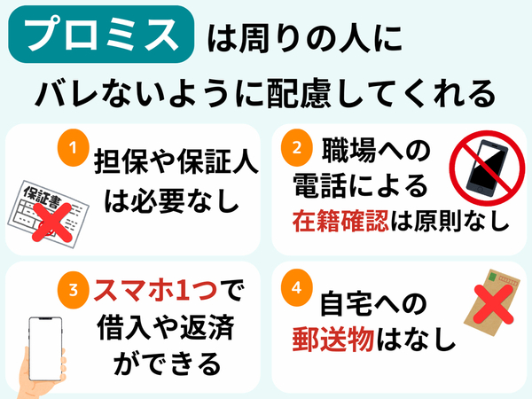 プロミスの強みの1つとして、周りの人にバレにくいことが挙げられます。