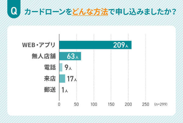 実際に消費者金融カードローンを利用した299人にアンケート調査したところ、7割の人がスマホで申し込みをしているようです↓