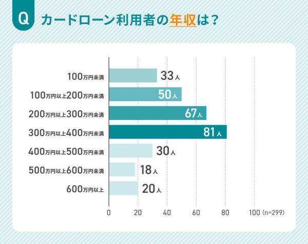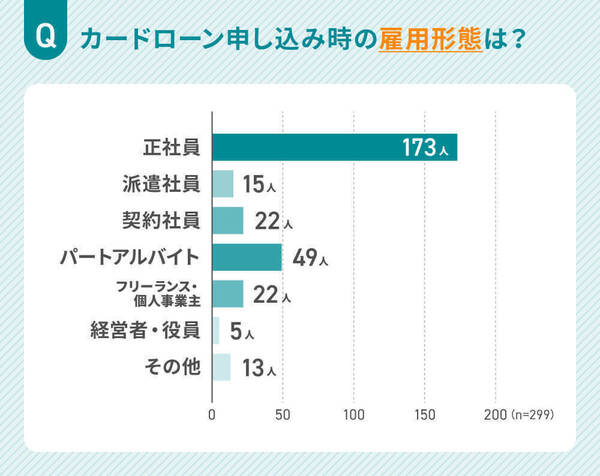 当サイトでは、カードローン利用者299人に対し、『年代』『雇用形態』『借入当時の年収』『借入金額』を聞いてみました↓